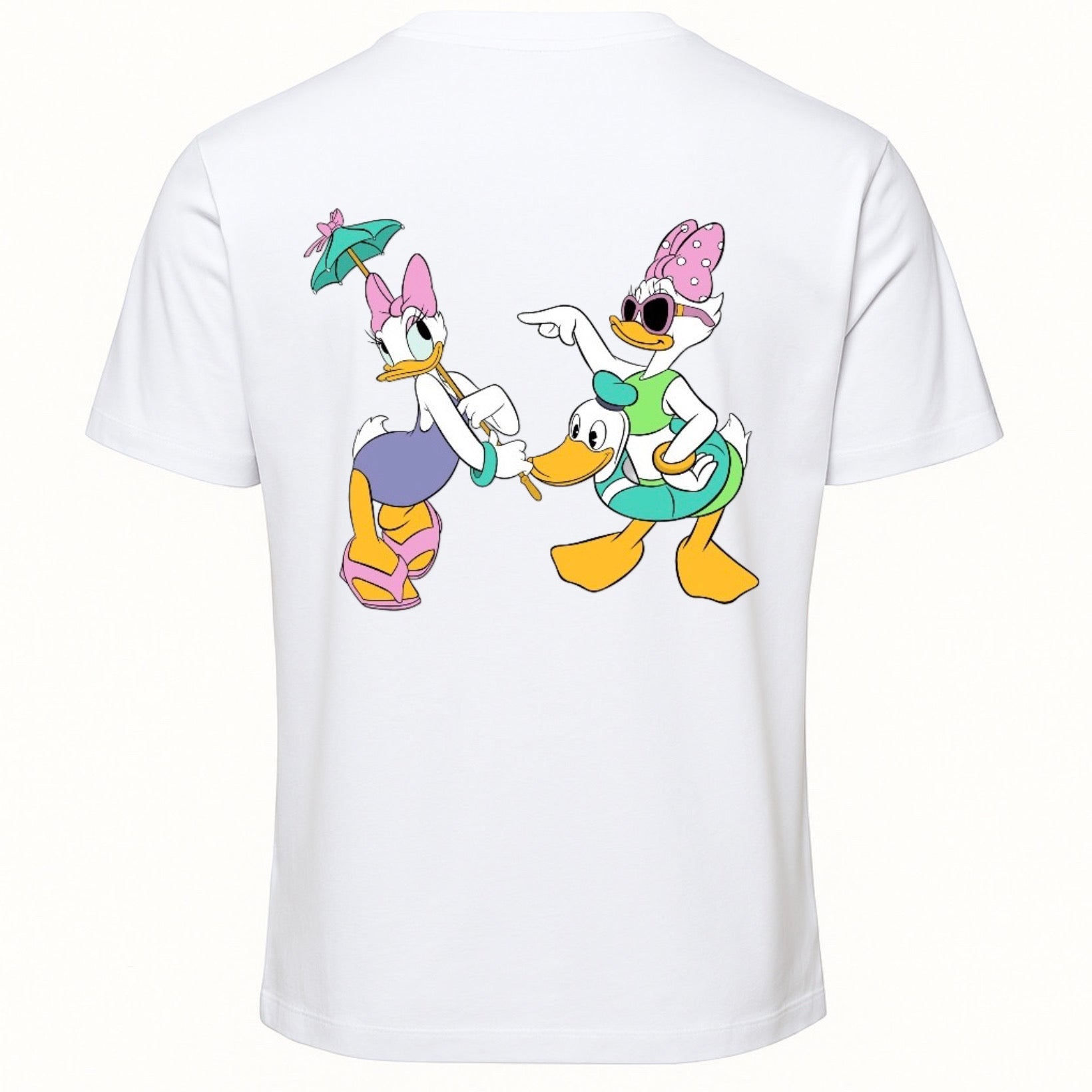Lazy Daisy features the bold quote “Stray away buddy” on the front, setting the tone before you even turn around. On the back, a flock of two cool ducks lounges on a sunny beach, shades on and worries off. Printed on a crisp white tee, this design is made for the effortlessly chill the ones who drift through life like a lazy wave and dare anyone to disrupt their peace.